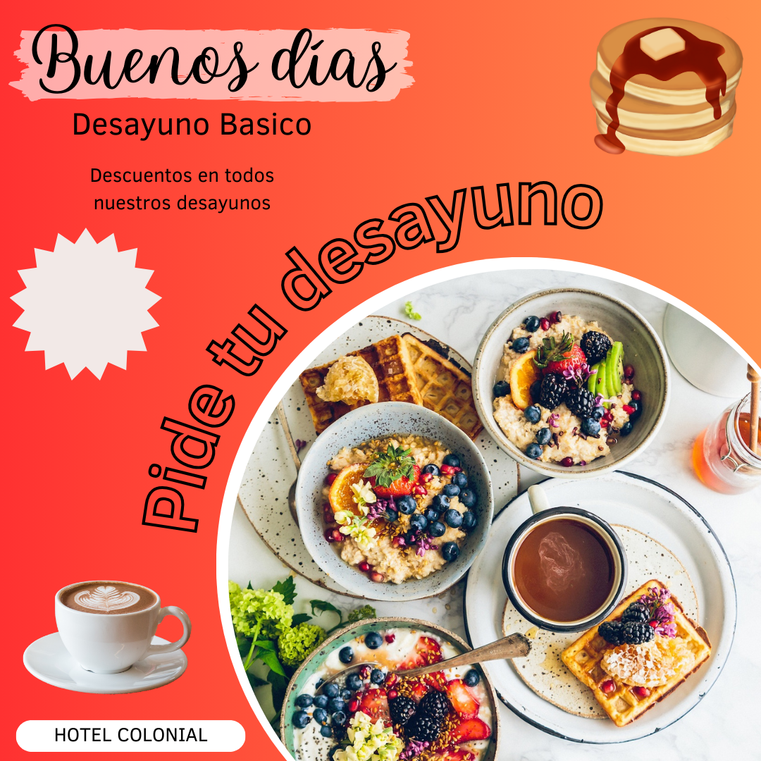 Comienza el día con una experiencia culinaria única en nuestro hotel colonial. Ofrecemos un delicioso y variado desayuno, preparado con los ingredientes más frescos.Cada mañana, tu desayuno será un deleite que te preparará para un día lleno de confort y tradición. En el ambiente acogedor de nuestro comedor. ¡Ven y haz de tu mañana una experiencia memorable!
