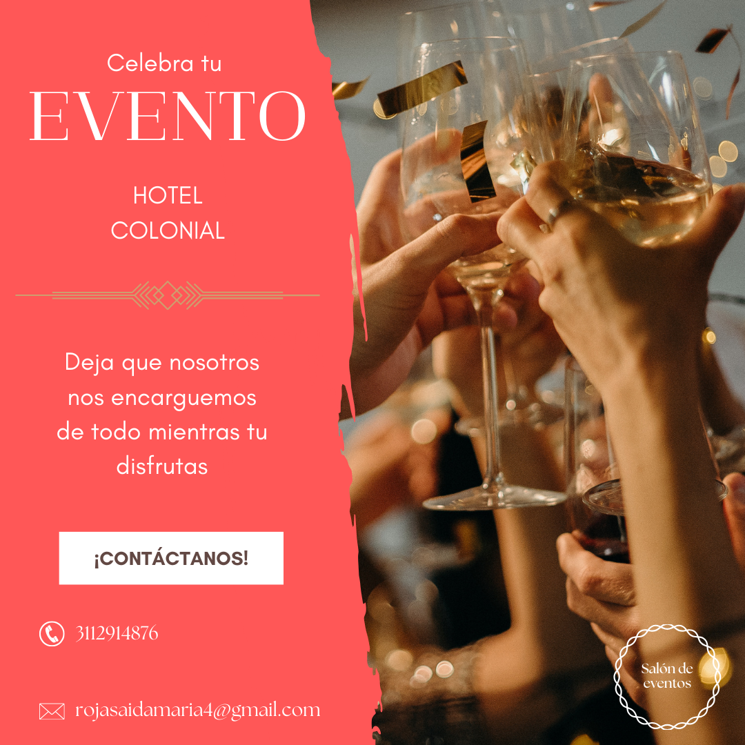 En nuestro hotel colonial, ofrecemos el espacio perfecto para tus eventos más especiales. Con un ambiente único que combina la elegancia clásica con la calidez de la tradición, nuestro salon. Cada rincón de nuestro hotel refleja el encanto de la arquitectura colonial, brindando a tu evento una atmósfera inigualable.